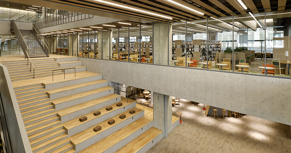 エントランスは現状のデザインを踏襲しつつ、重厚感のあるデザインとし、正面からだけでなく、側面から見ても美しくなるよう、細部にまでこだわりました。 会議室はエントランスからつながる雰囲気を表現し、 レインボーブリッジや東京タワーが一望できる大きな窓面が映えるように、統一感のある色味でまとめています。また、執務エリアとフリースペースを、 シェルフで緩やかに仕切ることで、見通しもよく自由に使える場の両立を目指しました。