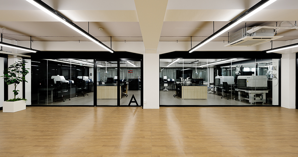 明るく開放的な『魅せる』ラボスペースは、ショールーム機能も備えつつ、広々とした通路を活かして打合せスペースとしても柔軟に活用できます