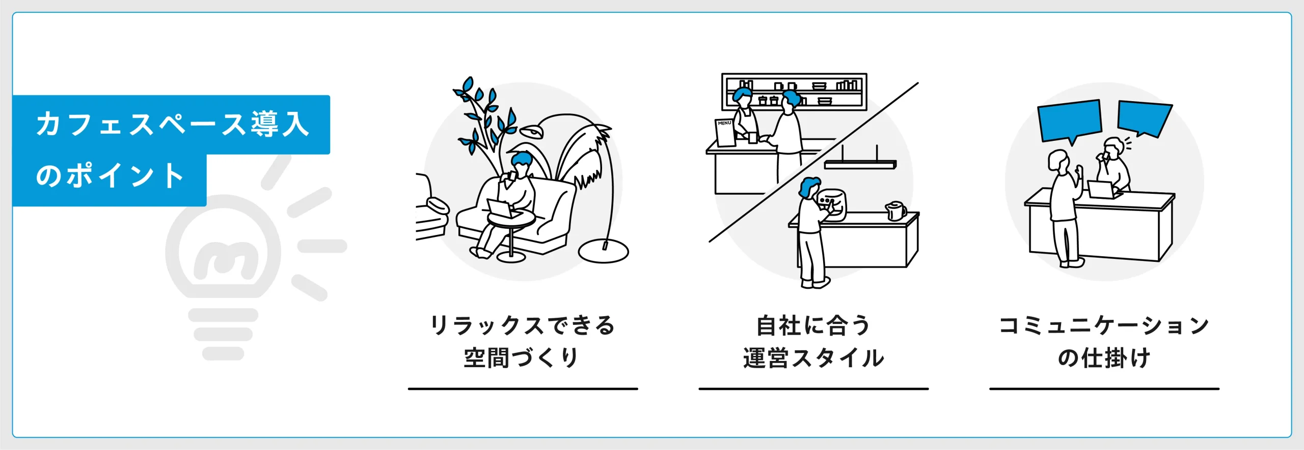 ここでは、カフェスペースを導入する際のポイントを解説します。